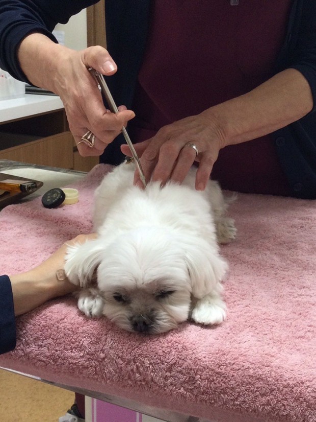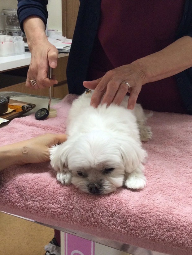 そんなアンジーくん、鍼灸治療にもすっかり慣れ、この日の治療中は爆睡していました。